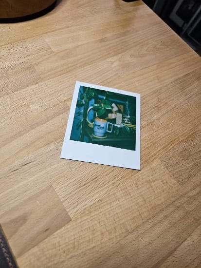 Anyway, the Polaroid. It took me almost two weeks to take the first photo. In part because I was aware of how precious the film was and wrestled with the idea of "wasting" it. When I finally did I thought for a moment that something was wrong because the picture didn't appear even after a few minutes. It was still just a blank gray square. The realization that the development took far longer than my brain was expecting was highly amusing. So I set the photo aside and went back to my morning routine. Slowly, so very slowly it seemed the picture resolved.
